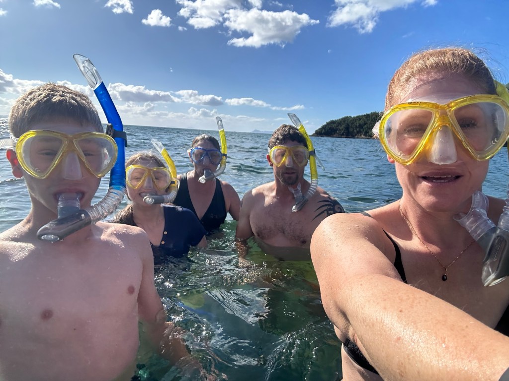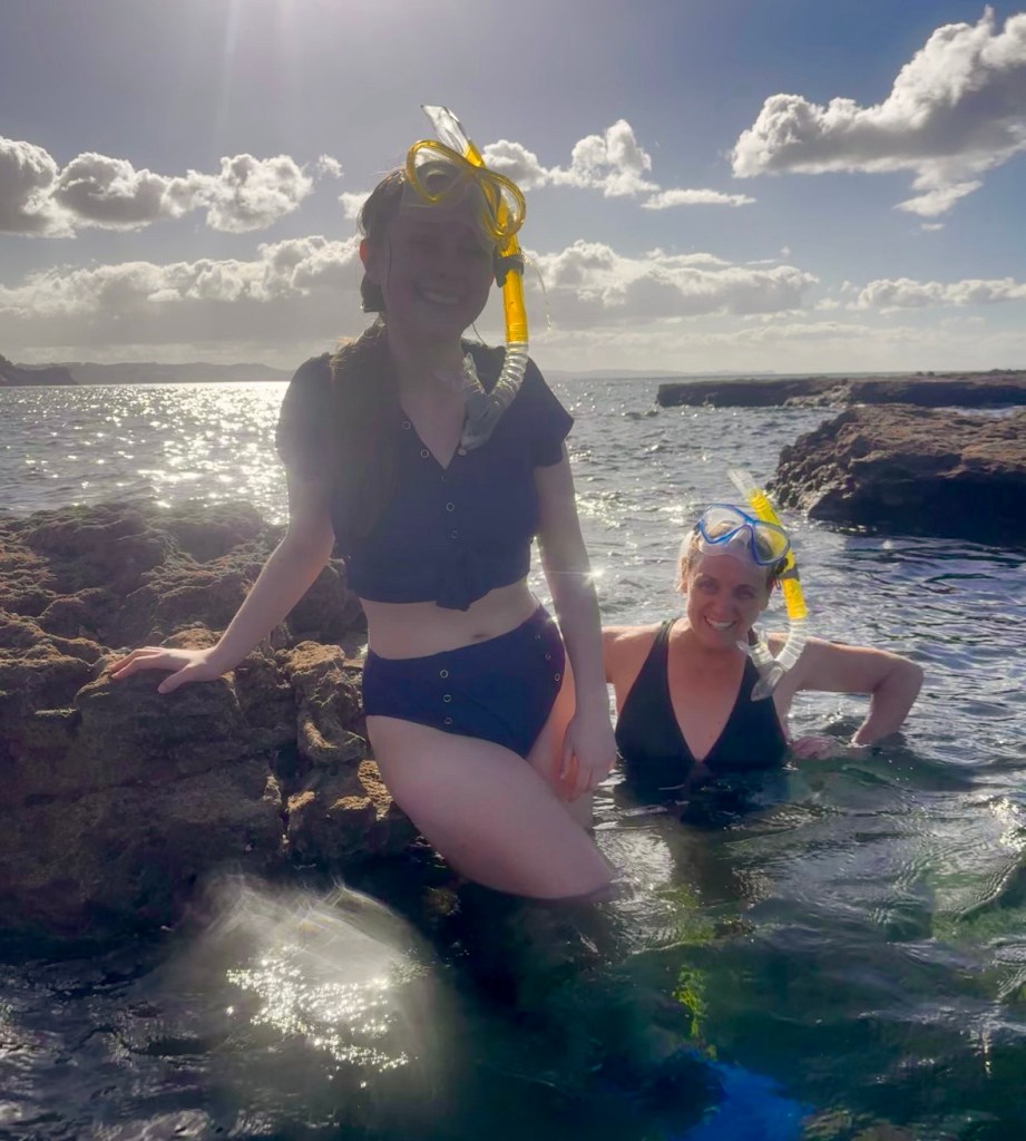 Then off to Goat Island Marine reserve, renting snorkels and fins and into the water. (Despite my (Jessa’s) best efforts at convincing everyone the water was warm enough without wetsuits, there was a lot of shivering. I’ll have to keep working on my convincing.).