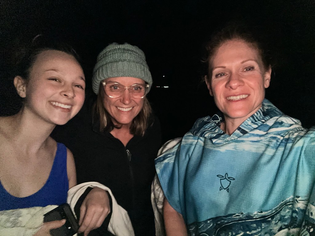 The only nighttime photo of us girls standing in the water of the beach at the bottom of the cliff hike from our villa.