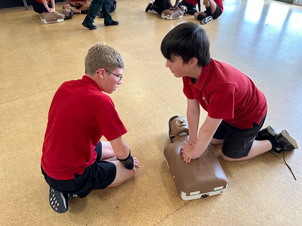 Leif learned CPR and some good basic first aid with one of the ambulance companies here who came to his school. Sadly, this quadruple amputee did not make it. 😉