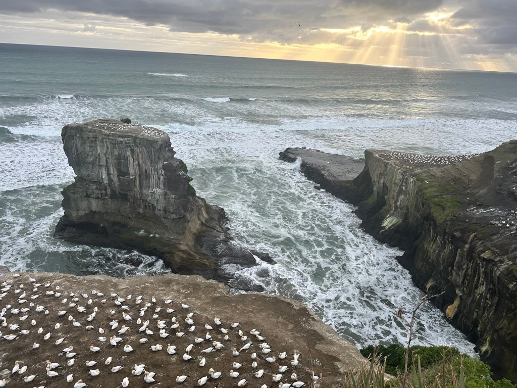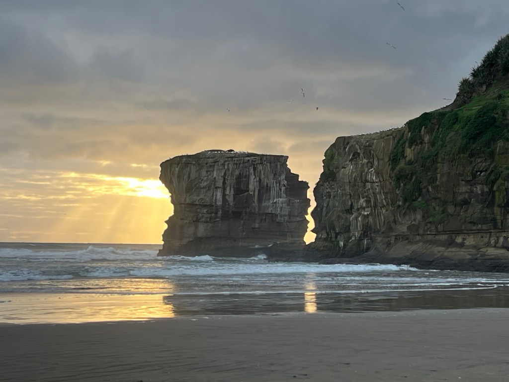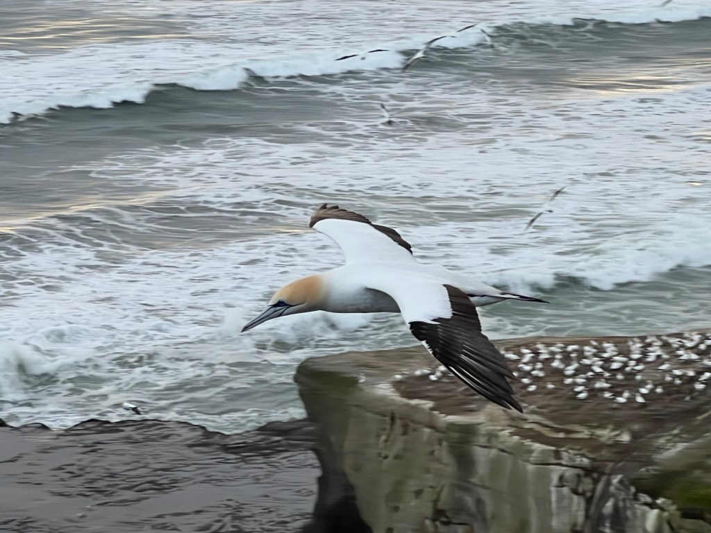 We then continued west to Muriwai Gannet colony and Mäori Bay. It’s been a sunny few days, but cold so no swimming or surfing for us this time.